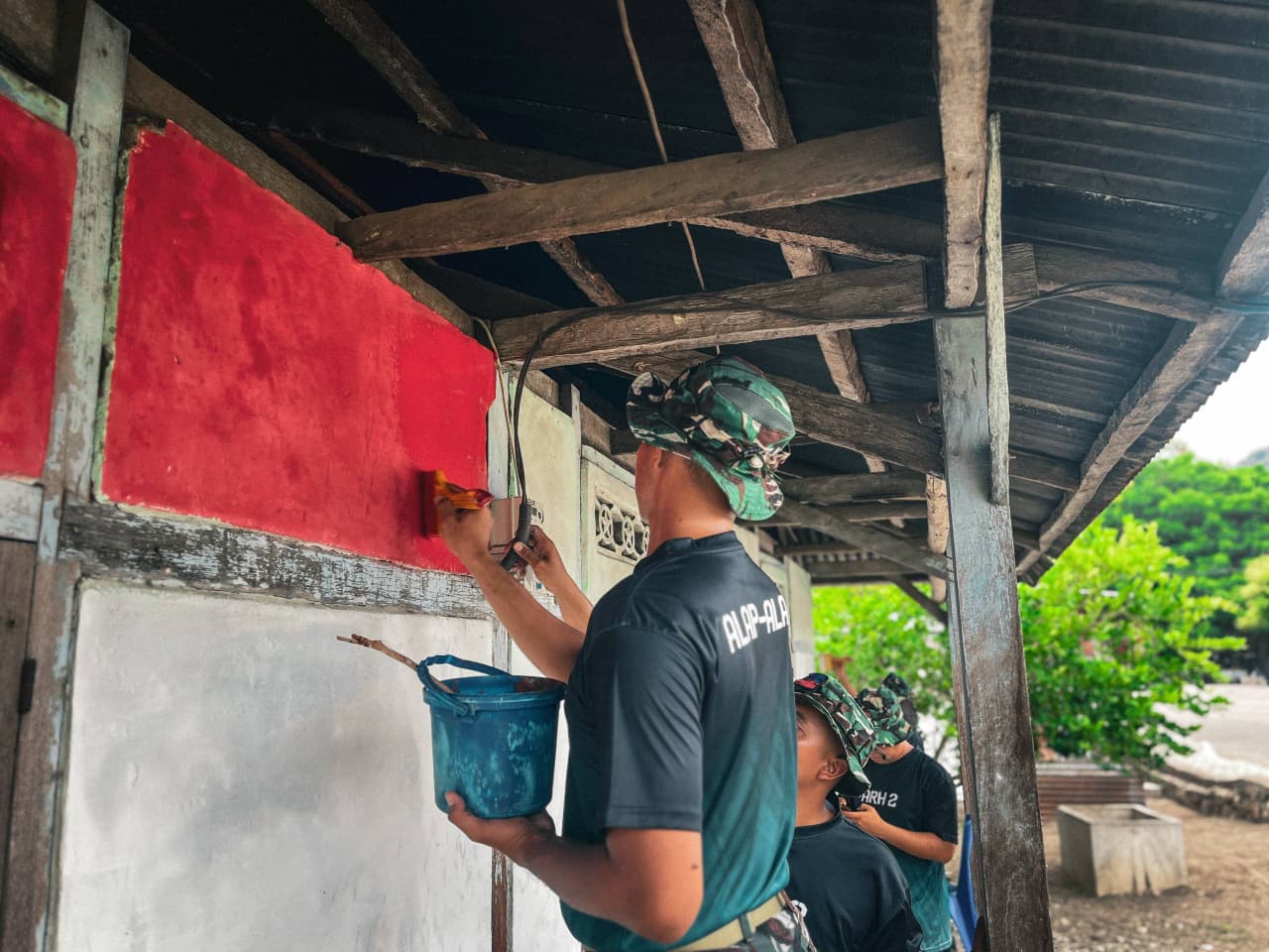 TTU, www.jatimkukini.com – Sebagai wujud kepedulian dan kemanunggalan TNI dengan rakyat di wilayah perbatasan, Satgas Pamtas RI–RDTL Sektor Barat Yonarhanud 2 Kostrad Pos Wini melaksanakan Karya Bakti untuk masyarakat Wini dengan melakukan pengecatan rumah salah satu warga di Desa Wini, Kecamatan Insana Utara, Kabupaten TTU. Kamis (08/01/2026).