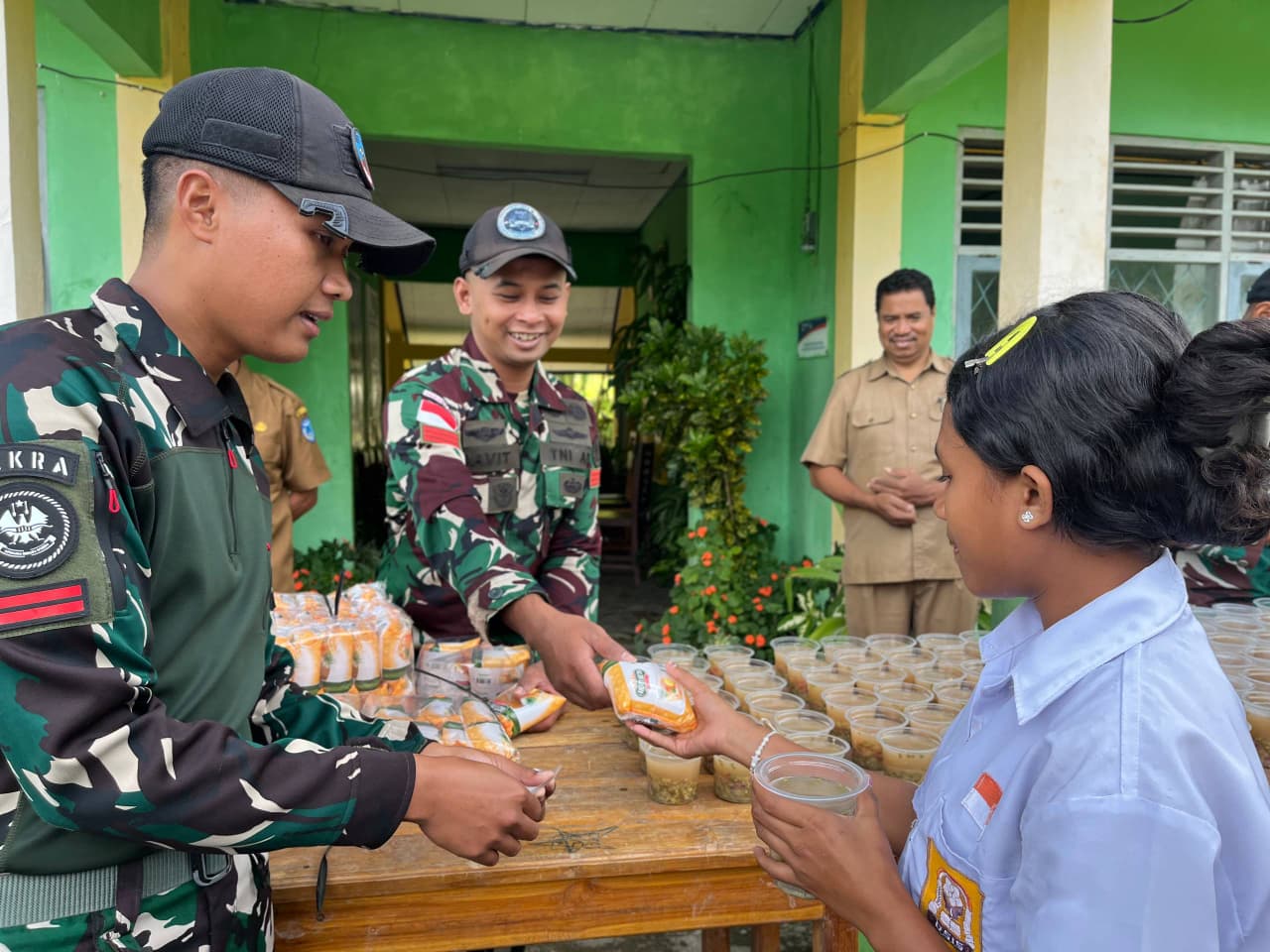 TTU, www.jatimkukini.com Satgas Pamtas RI–RDTL Sektor Barat Yonarhanud 2 Kostrad Pos Haumeniana melaksanakan kegiatan berbagi bubur kacang hijau di SMPN Satap Oetulu, Desa Oetulu, Kecamatan Musi, Kabupaten TTU, Selasa (03/02/2026).