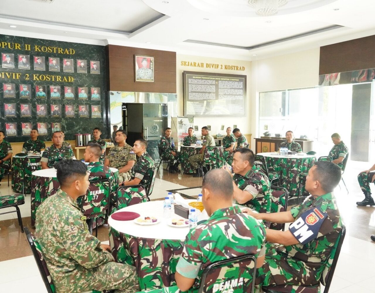 Malang, www.jatimkukini.com – Pendiv2_Divif 2 Kostrad menerima kunjungan kehormatan dari Tentara Diraja Malaysia (TDM) dalam rangka Latihan Bersama Linud Malindo-8 tahun 2025. Kegiatan ini menjadi simbol eratnya hubungan bilateral dan semangat sinergi militer antara Indonesia dan Malaysia. Latihan ini akan berlangsung selama 2 minggu kedepan berbasis di MaYonif 503/Mayangkara Mojokerto. Kamis (18/9/25).