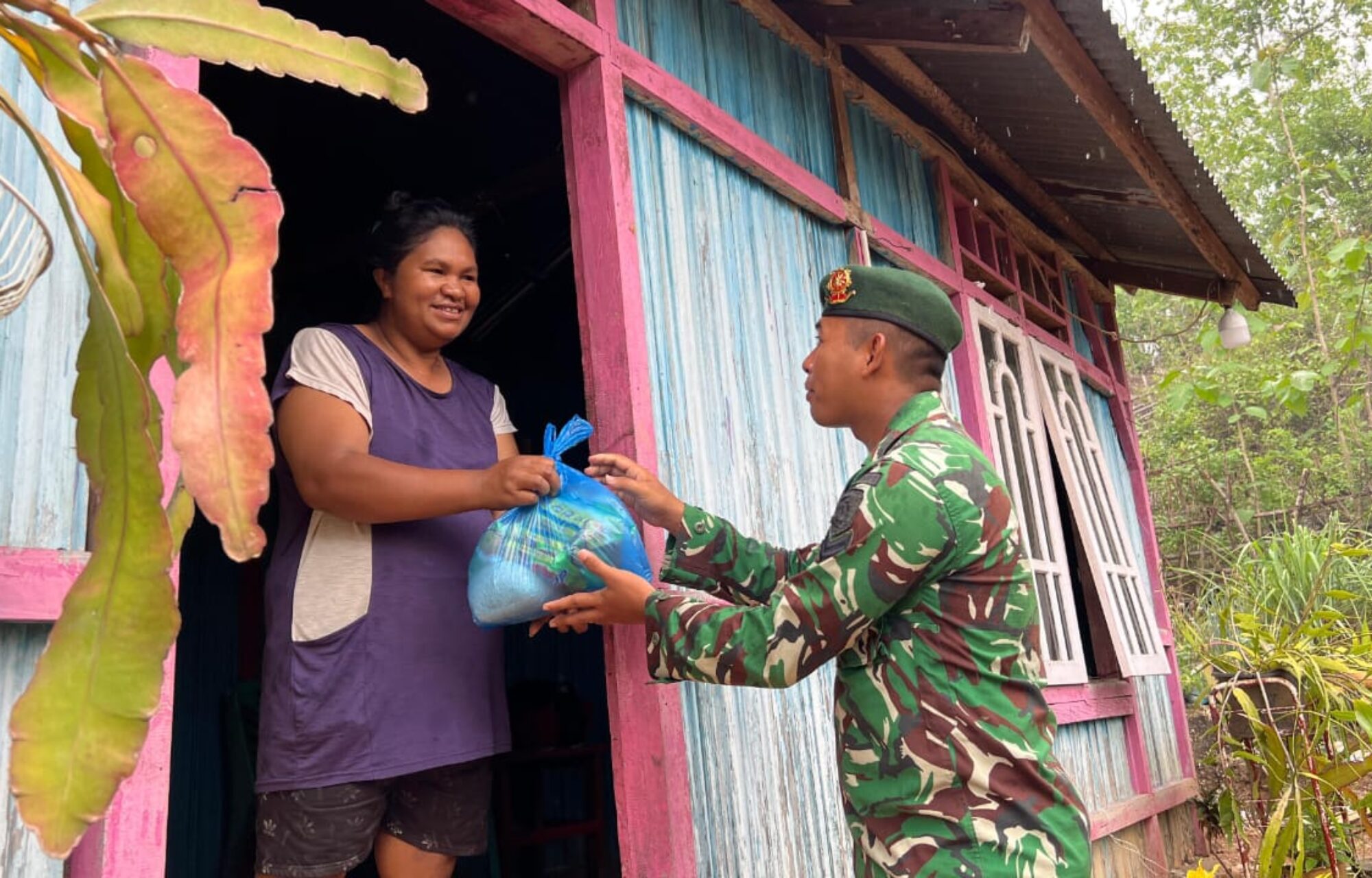 Danyonarmed 12 Kostrad, Letkol Arm Dr. Erlan Wijatmoko, S.H., M.Han., memberikan apresiasi atas dedikasi personel Pos Nunura dalam mendukung kemajuan pendidikan di daerah perbatasan.