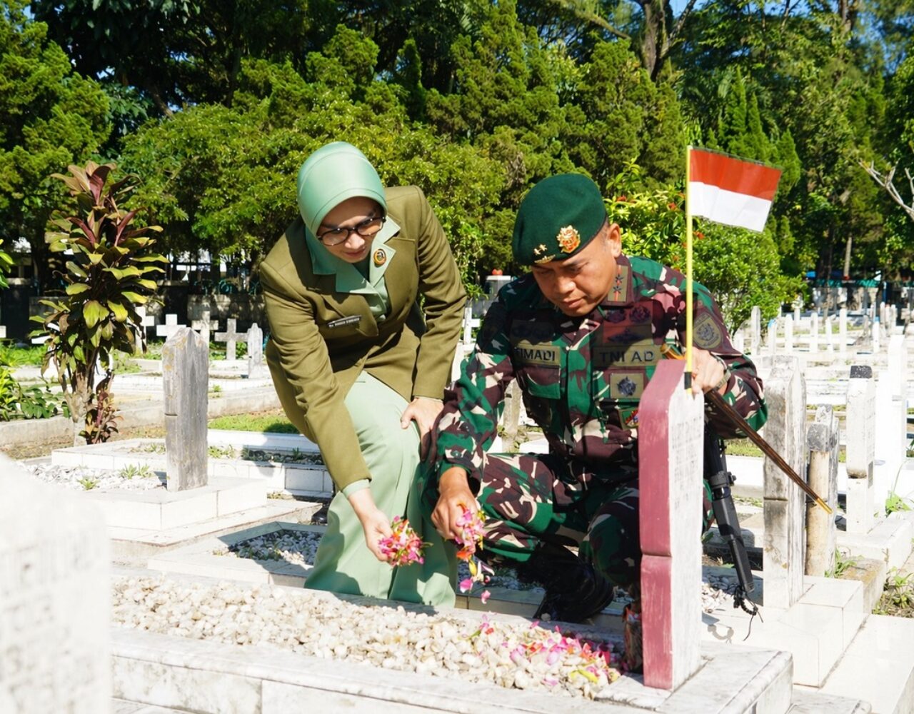 Dengan penuh khidmat, Pangdivif 2 Kostrad meletakkan karangan bunga di tugu makam pahlawan, simbol rasa terima kasih yang tak terhingga. Prosesi tabur bunga kemudian dilakukan, di mana setiap kelopak bunga yang jatuh di pusara menjadi lambang cinta, doa, dan penghargaan abadi bagi para kusuma bangsa.