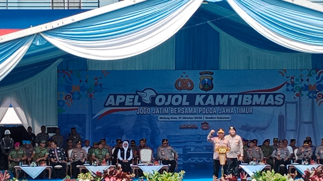 Malang, www.jatimkukini.com – Stadion Gajayana menjadi saksi kebersamaan lintas institusi dalam menjaga stabilitas keamanan Jawa Timur. Dalam kegiatan Apel Ojol Kamtibmas Jaga Jawa Timur yang dipimpin langsung oleh Kapolri Jenderal Polisi Drs. Listyo Sigit Prabowo, M.Si., turut hadir Panglima Divisi Infanteri 2 Kostrad, Mayjen TNI Susilo, S.I.P., bersama Gubernur Jawa Timur Dr. (H.C.UA) Hj. Khofifah Indar Parawansa dan jajaran pejabat Forkopimda, Malang, Jumat, 31 Oktober 2025.