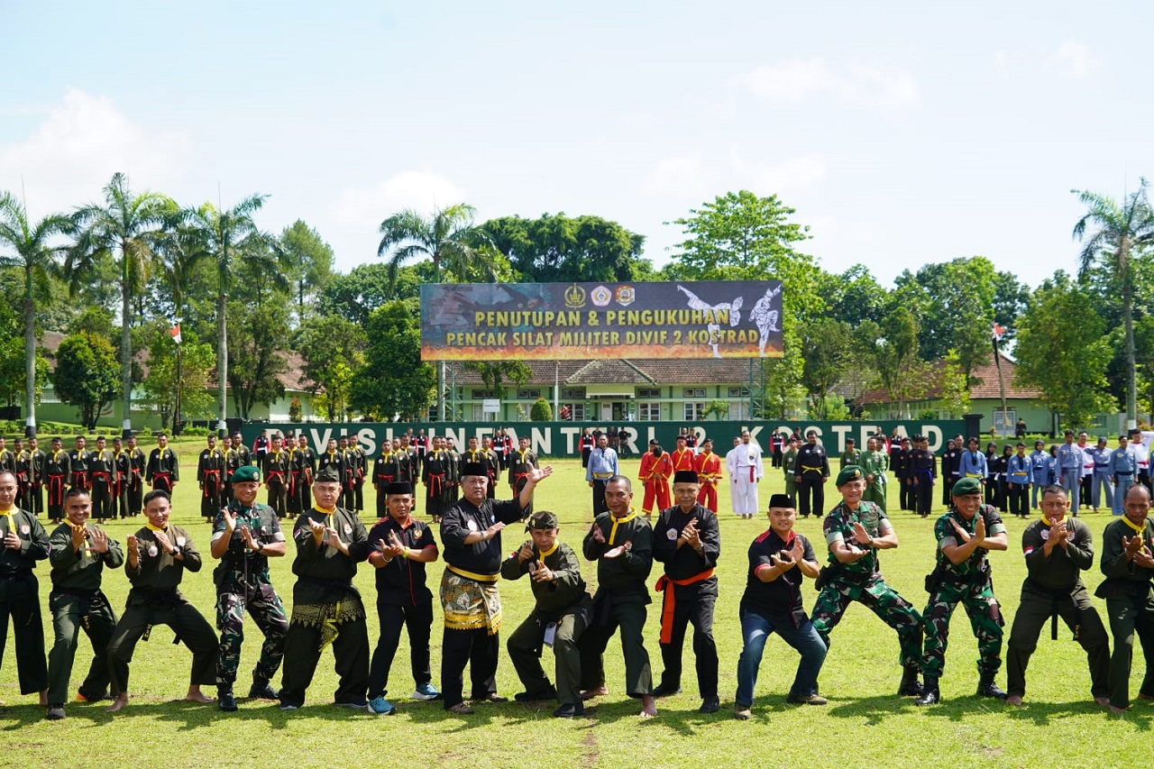 Malang, www.jatimkukini.com – Lapangan Sapta Marga Divif 2 Kostrad, Desa Ardimulyo, Singosari, menjadi saksi sejarah atas terselenggaranya Pengukuhan Pengurus Daerah Khusus (Pengdasus) Pencak Silat Militer (PSM) Divif 2 Kostrad Satjar TA 2025. Kegiatan ini berlangsung khidmat dan penuh semangat mulai pukul 08.00 hingga 09.20 WIB, dipimpin langsung oleh Brigjen TNI Dedi Ruswandi, S.Sos., M.M., selaku Kadisjasad dan Ketua Umum Pengurus Pusat Perguruan PSM, Kamis (23/10/2025).