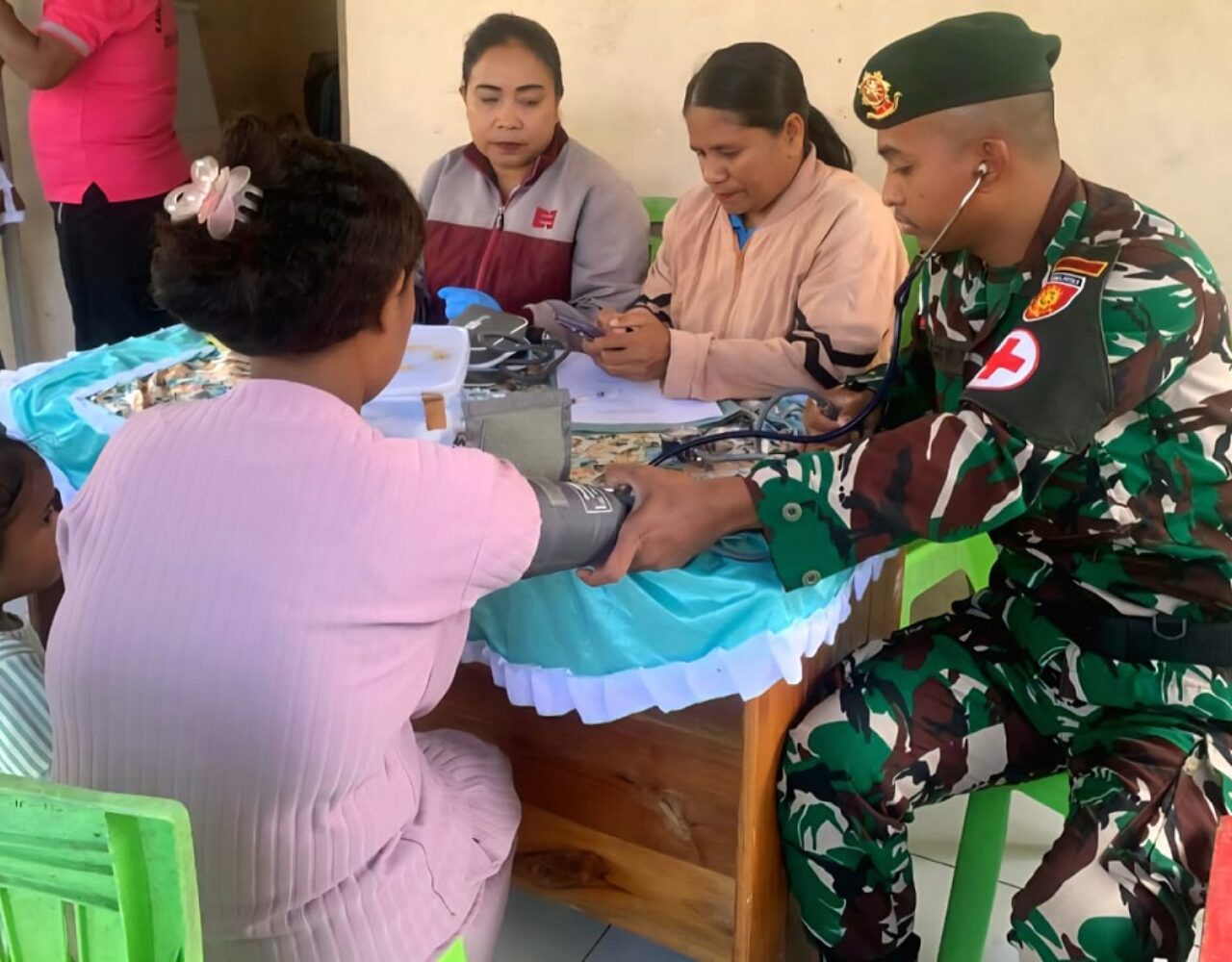 Kegiatan ini menjadi bagian dari program pembinaan teritorial Satgas dalam mendukung kesehatan masyarakat di wilayah perbatasan, Minggu (19/10/2025).
