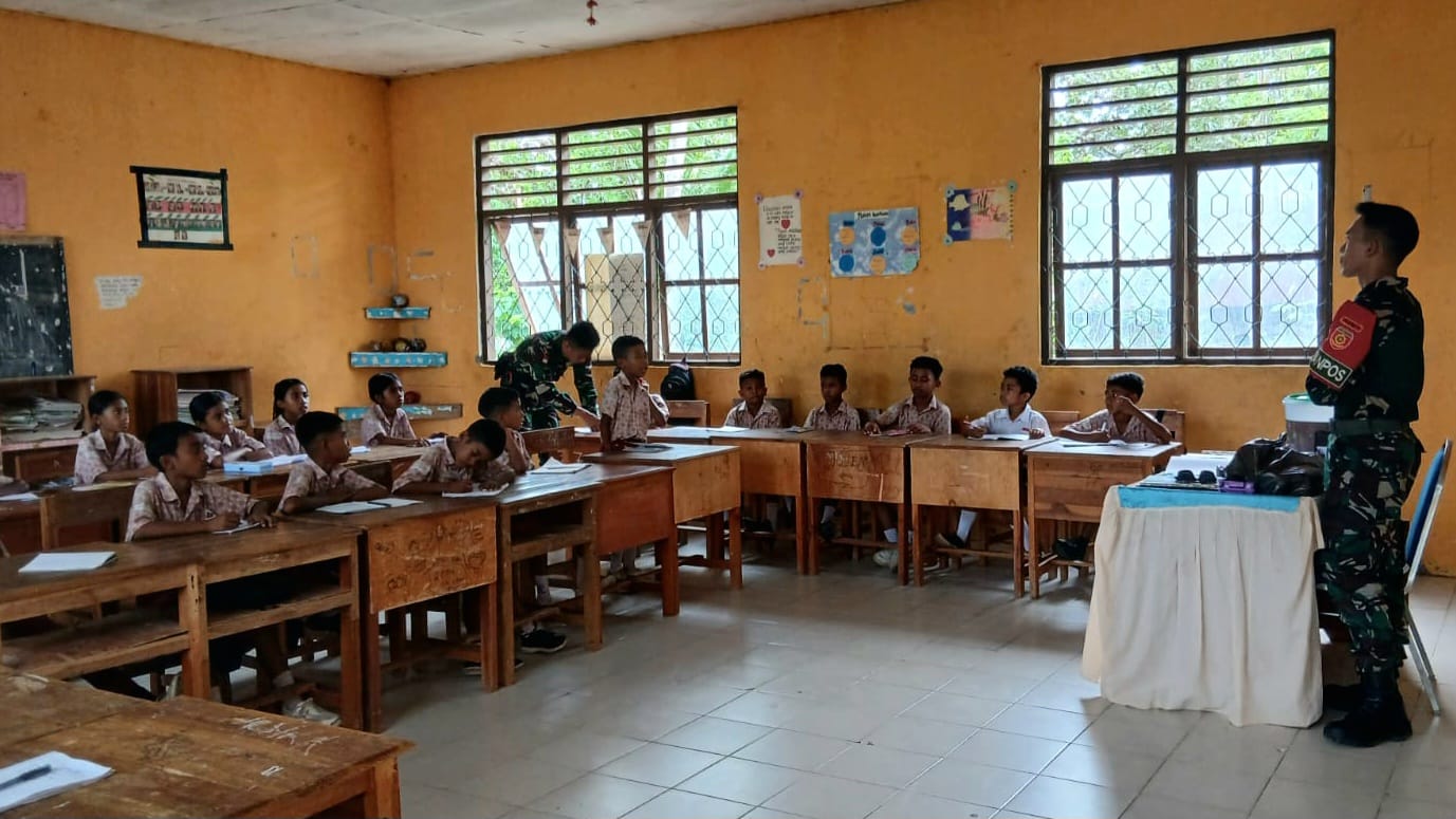 Belu, www.jatimkukini.com — Prajurit Pos Nunura Satgas Pamtas RI–RDTL Yonarmed 12 Kostrad kembali menunjukkan kepeduliannya terhadap dunia pendidikan di wilayah perbatasan dengan melaksanakan kegiatan pengajaran dan pendidikan di SDN Sekutren, Kecamatan Raihat. Kegiatan ini diisi dengan pembelajaran interaktif yang dikemas ringan dan menyenangkan bagi para siswa, Kamis (6/11/2025).