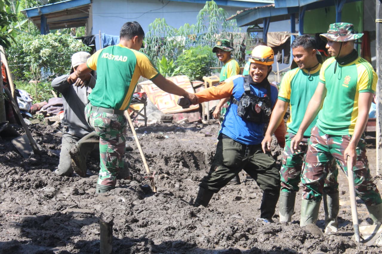 Selain fokus membuka akses jalan yang tertutup lumpur, prajurit juga berupaya memulihkan semangat warga. Di sela-sela kerja keras, mereka menyempatkan diri bercakap-cakap ringan, melontarkan candaan sederhana, dan memberikan dukungan moral agar warga tetap tegar menghadapi situasi sulit ini. Kehadiran prajurit TNI di tengah masyarakat tidak hanya membawa tenaga untuk pemulihan fisik, tetapi juga menghadirkan kehangatan dan rasa aman. (pendiv2)