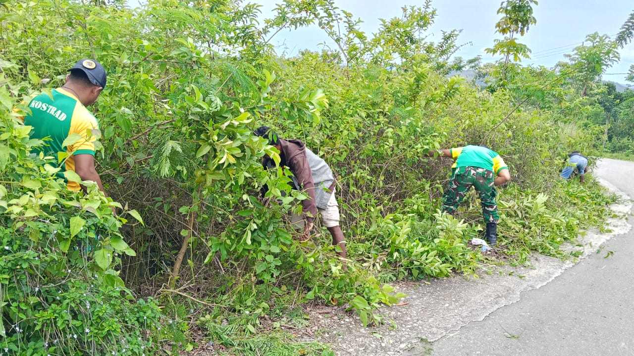 Kegiatan karya bakti tersebut dilaksanakan oleh personel Satgas Pos Laktutus bersama aparat desa dan masyarakat setempat dengan membersihkan halaman kantor desa serta memangkas rumput liar di sekitarnya. Kebersamaan dan semangat gotong royong terlihat selama kegiatan berlangsung.