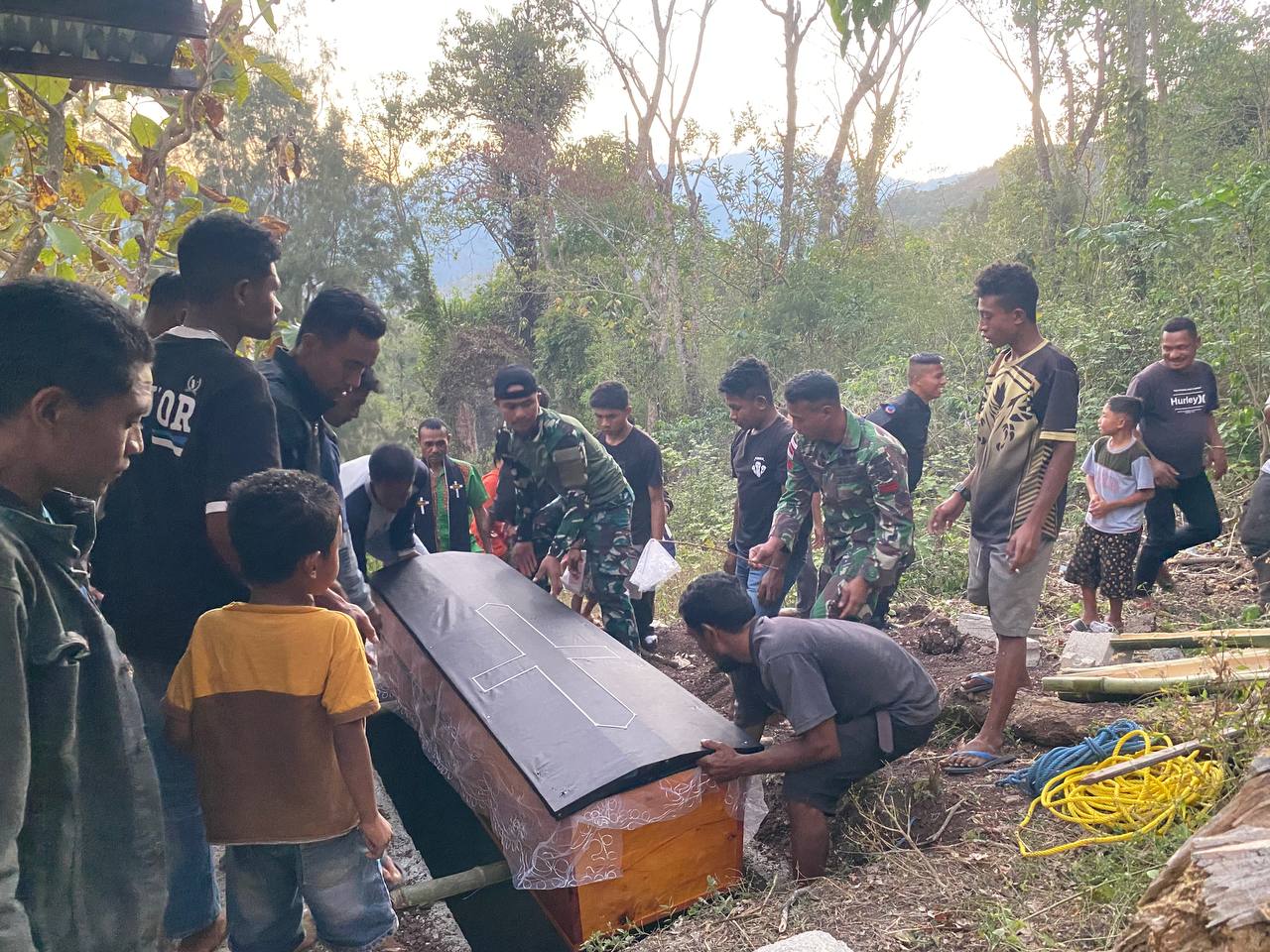 TTU, www.jatimkukini.com – Satgas Pamtas RI-RDTL Sektor Barat Yonarhanud 2 Kostrad, melalui SSK 2 Pos Nilulat, turut membantu pelaksanaan tradisi adat pemakaman salah satu warga, almarhum Sdr. Ari (25 tahun), di Desa Nilulat, Kecamatan Bikomi Nilulat, Kabupaten Timor Tengah Utara (TTU).