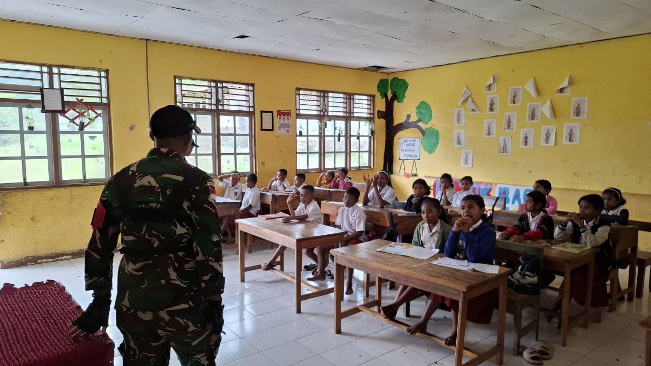 Dalam pelaksanaannya, personel Satgas Pamtas memberikan materi pembelajaran sederhana yang dikemas secara interaktif dan menyenangkan. Selepas kegiatan pembelajaran, Satgas Pamtas membagikan bubur bergizi kepada seluruh siswa-siswi sebagai tambahan asupan gizi.