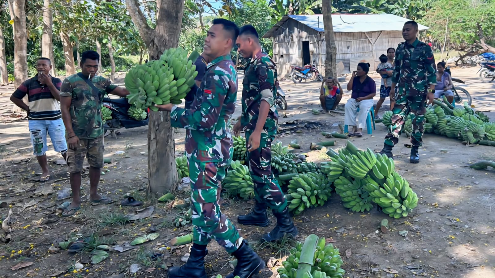 Malaka, www.jatimkukini.com – Personel Satgas Pamtas RI–RDTL Sektor Timur dari Yonarmed 12 Kostrad yang bertugas di Pos Haslot kembali menunjukkan kepeduliannya terhadap masyarakat di wilayah perbatasan. Kali ini, mereka turut membantu warga Desa Alas Selatan, Kecamatan Kobalima Timur, Kabupaten Malaka, Nusa Tenggara Timur, dalam kegiatan panen pisang, Senin (20/10/2025).