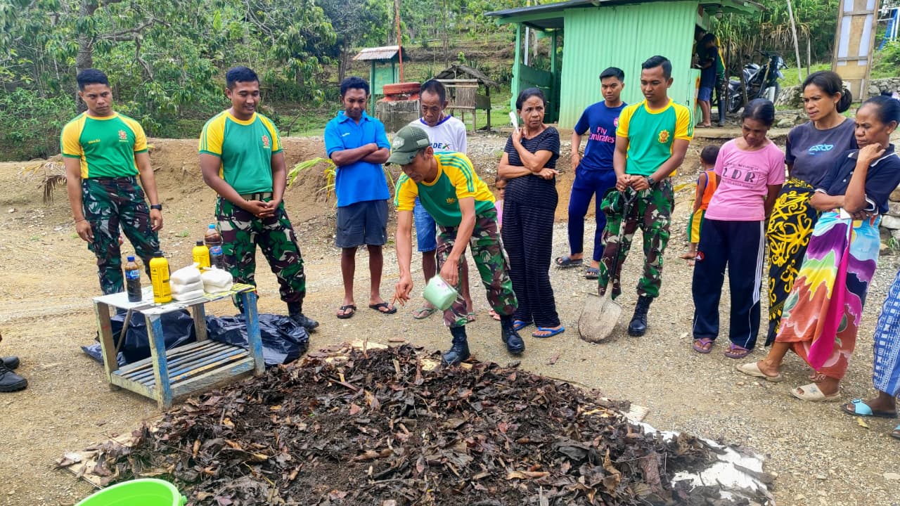Selama kegiatan berlangsung, warga terlihat antusias mengikuti setiap tahapan yang dipraktekkan langsung oleh personel Satgas. Metode pembuatan pupuk kompos sederhana menggunakan bahan alami yang mudah ditemukan di lingkungan sekitar, seperti dedaunan kering, rumput, dan limbah organik rumah tangga, menjadi fokus utama penyuluhan. Upaya ini diharapkan mampu membantu masyarakat mengembangkan pertanian yang lebih subur dan ramah lingkungan.