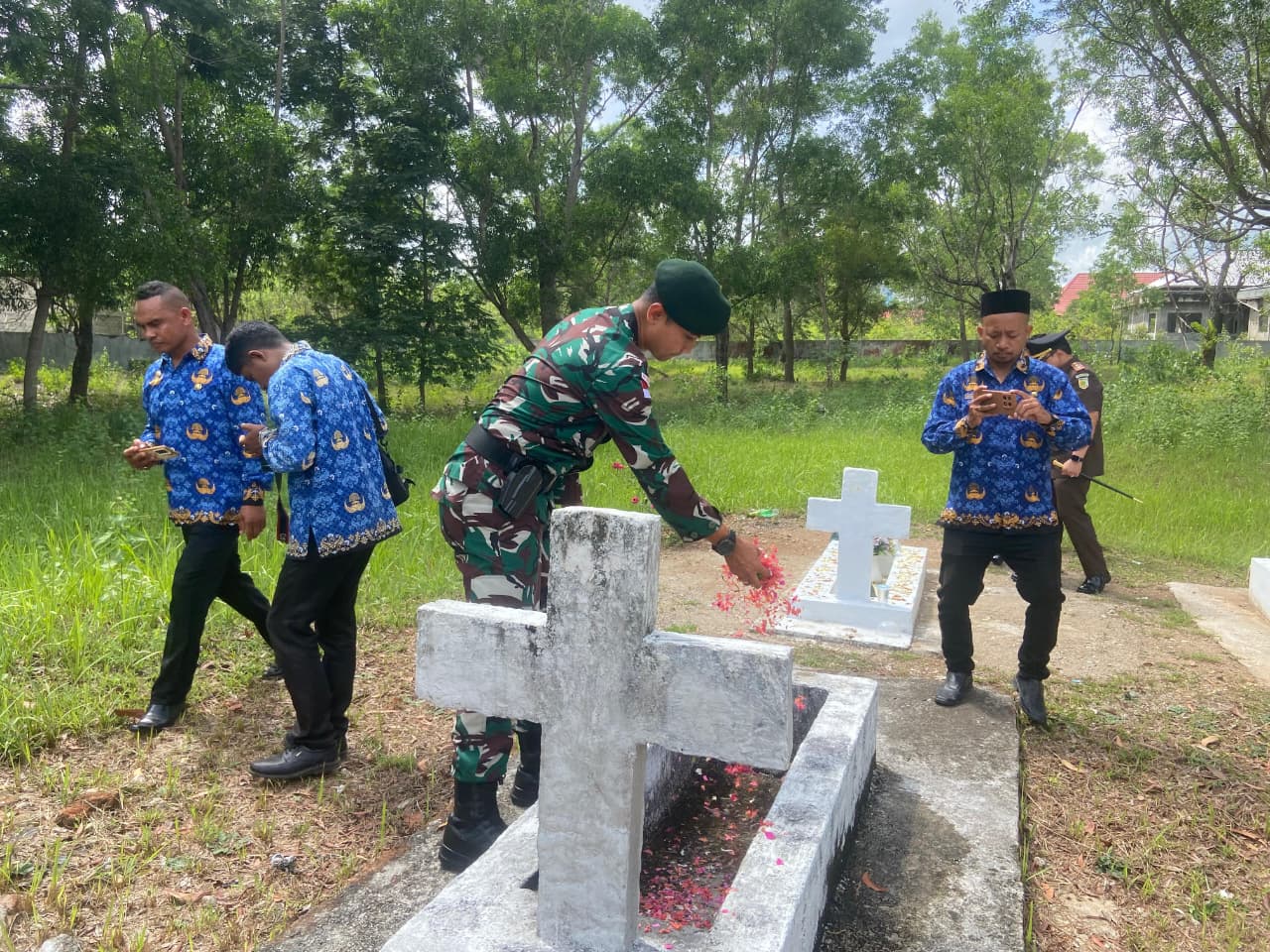 Rangkaian kegiatan dilanjutkan dengan pelaksanaan ziarah di TMP Cendana Luka. Dansatgas Pamtas Bersama Bupati TTU dan rombongan melaksanakan kegiatan tabur bunga untuk mengenang jasa para pahlawan. (yonarhanud2)