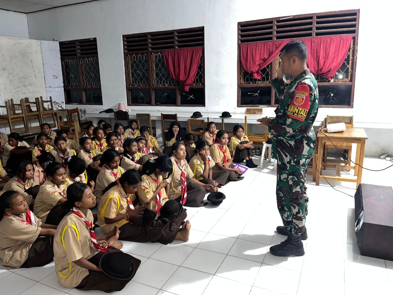 TTU, www.jatimkukini.com – Dalam upaya menanamkan nilai-nilai bela negara, nasionalisme, dan memperluas wawasan kebangsaan, Satgas Pamtas RI–RDTL Sektor Barat Yonarhanud 2 Kostrad memberikan pembekalan materi pada kegiatan perkemahan yang dilaksanakan di SMA Mutis Eban, Kecamatan Miomaffo Barat, Kabupaten Timor Tengah Utara (TTU), Minggu (19/10/2025).