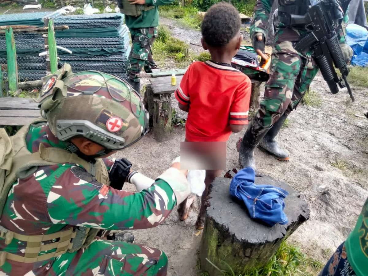 Puncak, www.jatimkukini.com – Satgas Yonif 700 Wira Yudha Cakti melalui Pos Dambed kembali menunjukkan kepeduliannya terhadap masyarakat dengan menggelar pengobatan gratis terhadap salah satu anak warga kampung Dambed Distrik Beoga, Kabupaten Puncak, Papua, Selasa (1/04/2025).