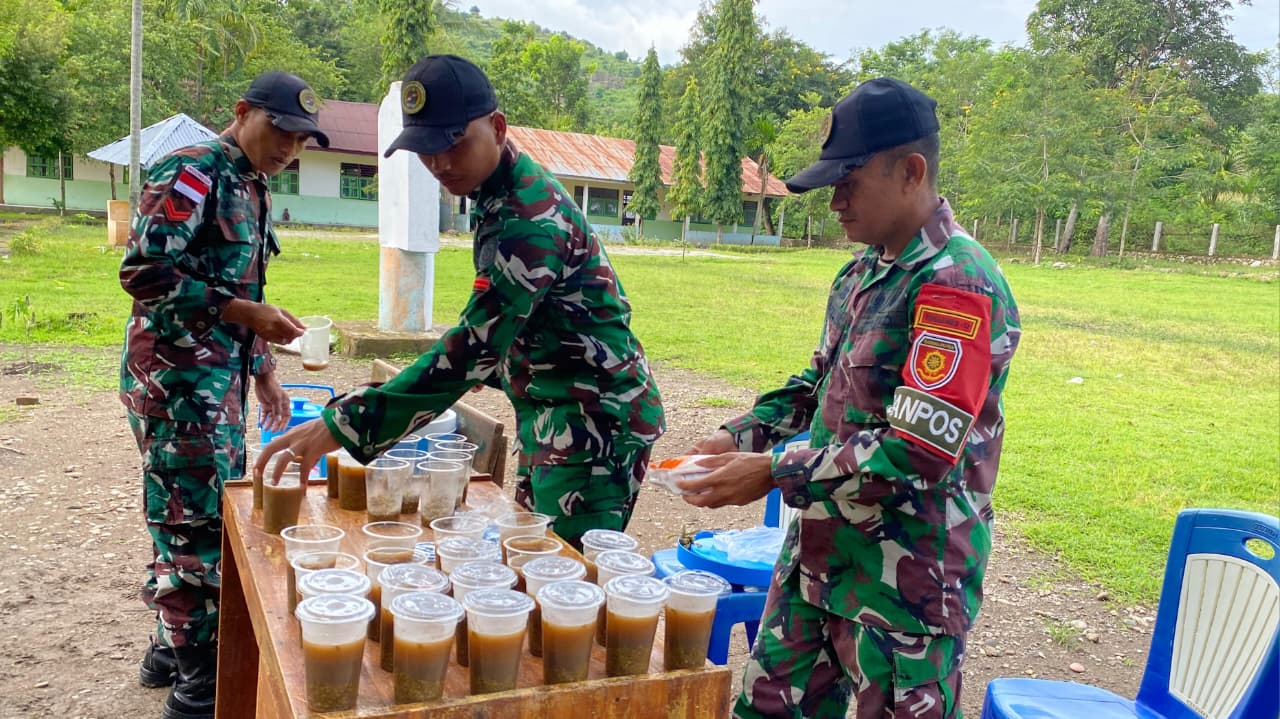 TTU, www.jatimkukini.com – Satgas Pamtas RI–RDTL Sektor Timur Yonarmed 12 Kostrad melalui Pos Maubusa melaksanakan kegiatan pembagian bubur kacang hijau kepada para siswa di SDK Wesoer, Haekkesak. Kegiatan ini merupakan bentuk kepedulian Satgas terhadap pemenuhan gizi anak-anak sekolah di wilayah perbatasan, sekaligus sebagai upaya mendukung tumbuh kembang generasi muda.