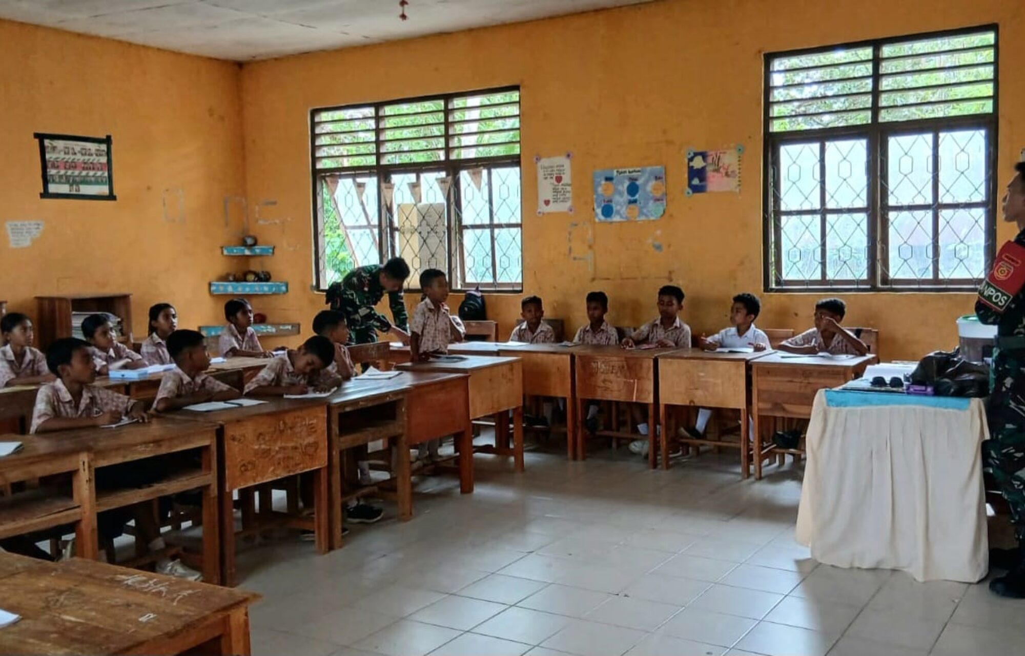 Pos Nunura Satgas Pamtas RI–RDTL Yonarmed 12 Kostrad Gelar Pengajaran dan Berbagi Bubur Kacang Ijo di SDN Sekutren