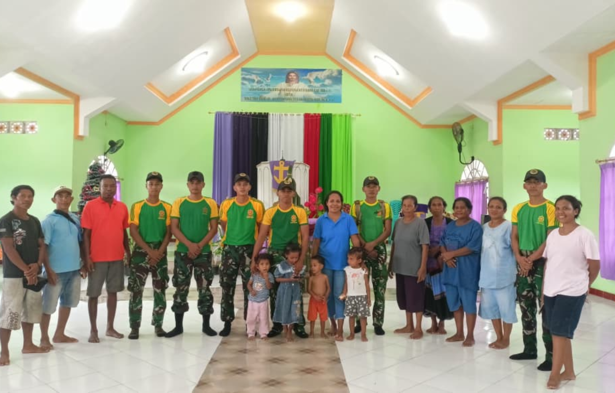Satgas Pamtas Pos Motamasin Hadirkan Semangat Natal Melalui Karya Bakti