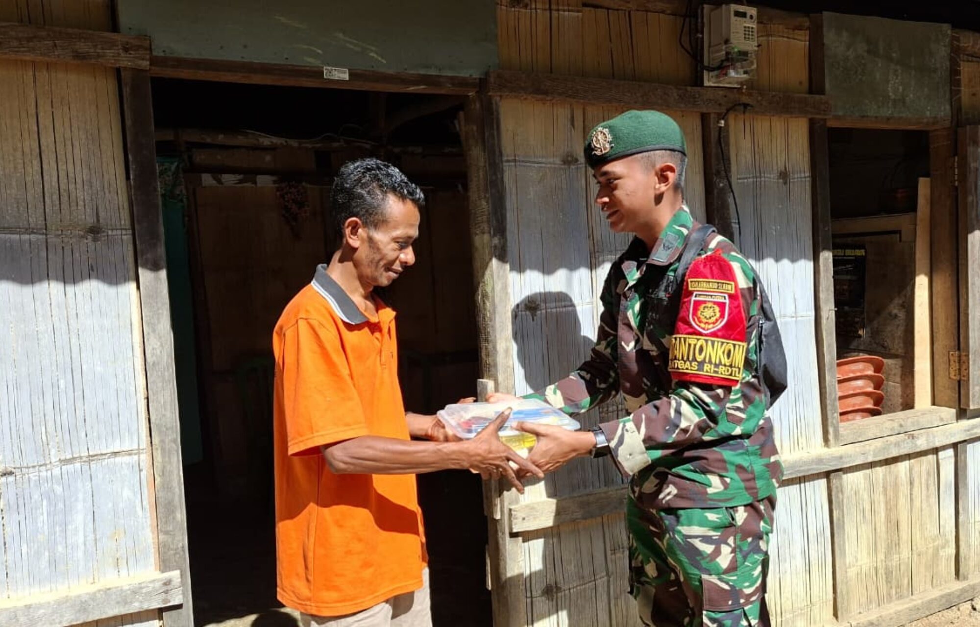 Satgas Pamtas Yonarhanud 2 Kostrad Adakan Jumat Berkah Bagikan Bantuan Sembako Bagi Warga