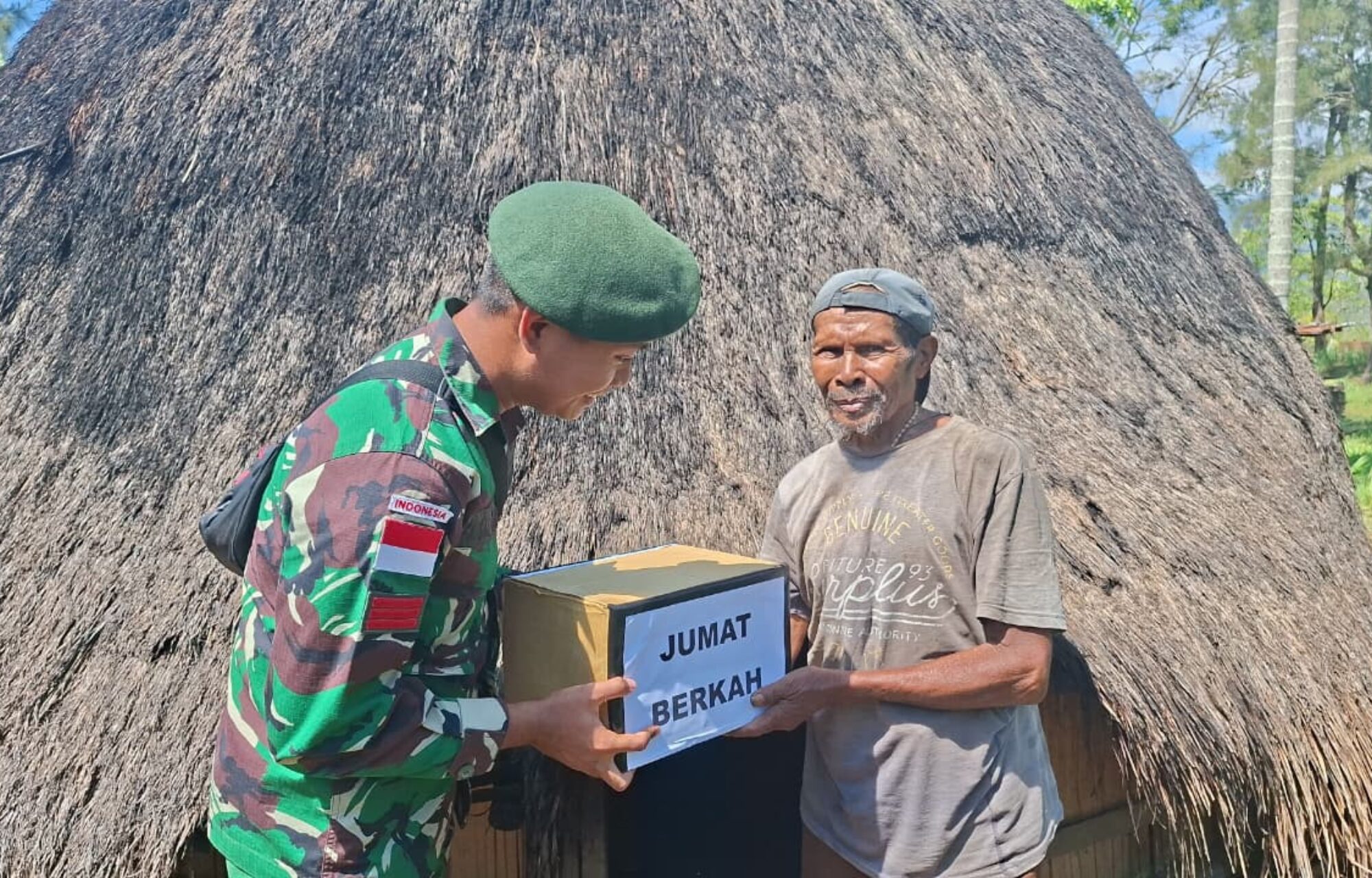 Satgas Pamtas Yonarhanud 2 Kostrad Adakan Jumat Berkah Membagi Sembako di Desa Eban