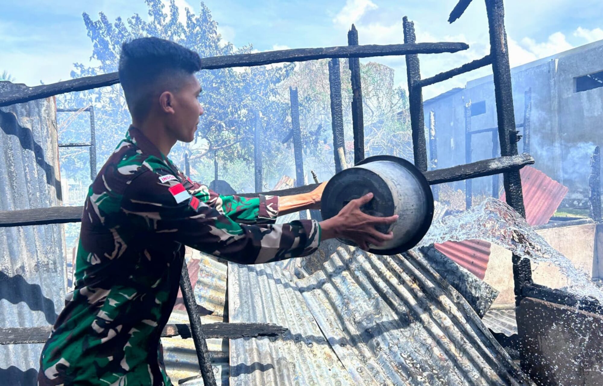 Satgas Pamtas Yonarmed 12 Kostrad Bantu Padamkan Kebakaran Rumah Warga di Desa Alas Selatan