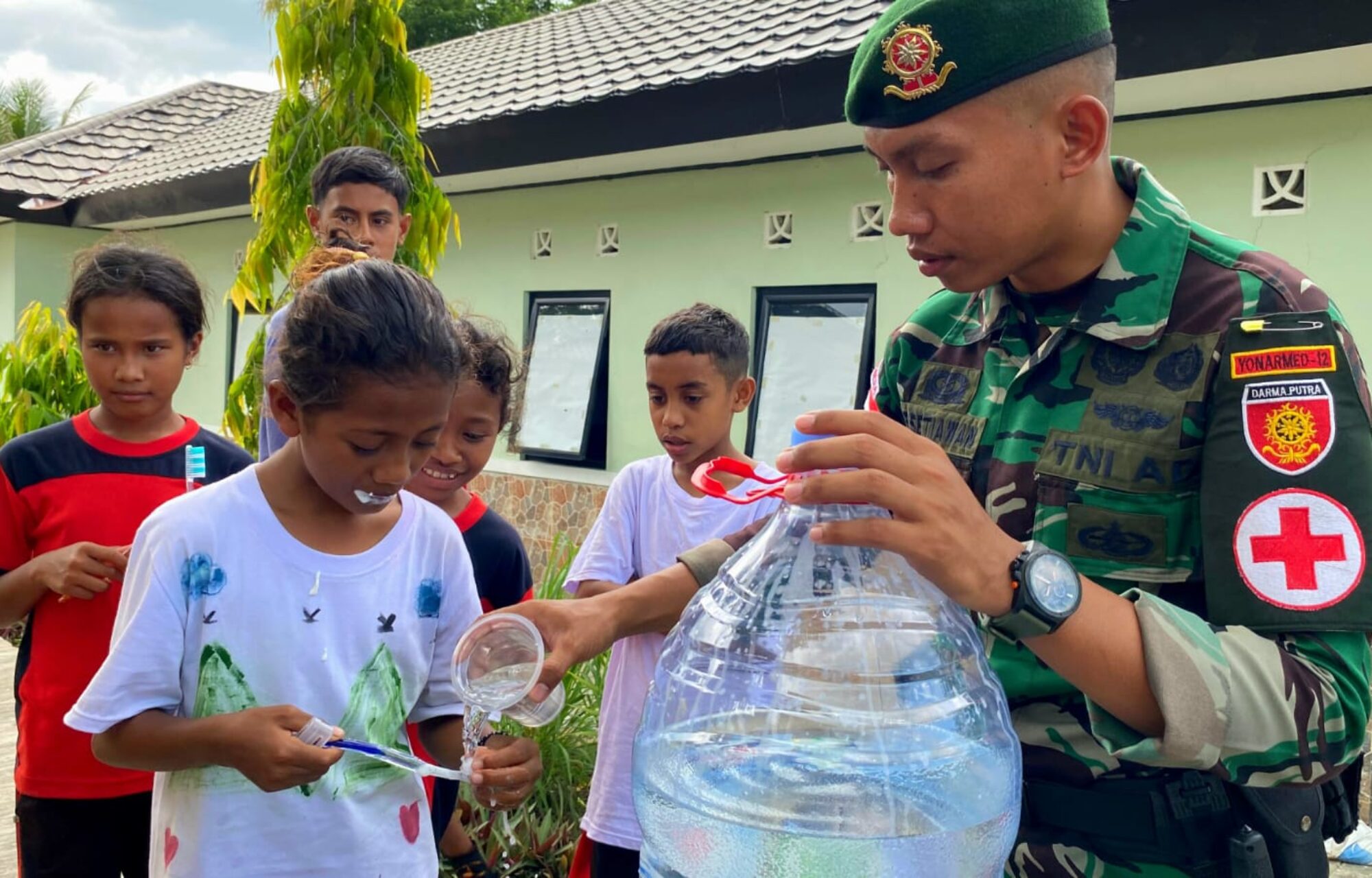 Satgas Pamtas Yonarmed 12 Kostrad Dorong Pola Hidup Sehat Anak Perbatasan Asulait