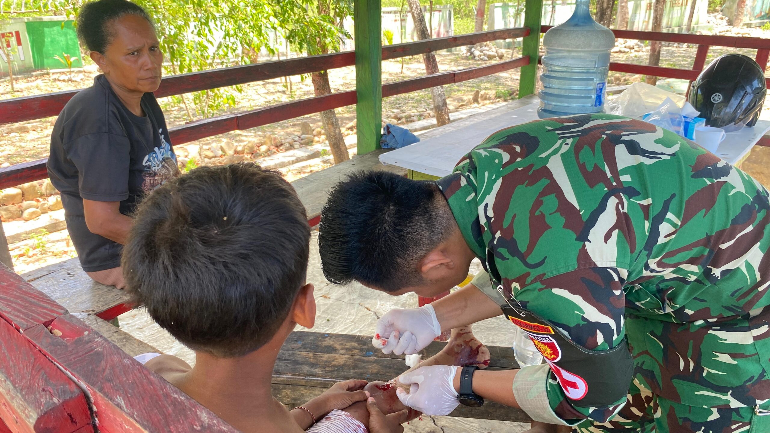 Belu, www.jatimkukini.com – Satgas Pamtas RI–RDTL Sektor Timur Yonarmed 12 Kostrad melalui Pos Salore kembali menunjukkan aksi tanggap dan kepedulian kepada masyarakat perbatasan. Personel Pos Salore memberikan pelayanan kesehatan darurat kepada seorang warga yang mengalami luka cukup dalam dan memerlukan tindakan penjahitan.