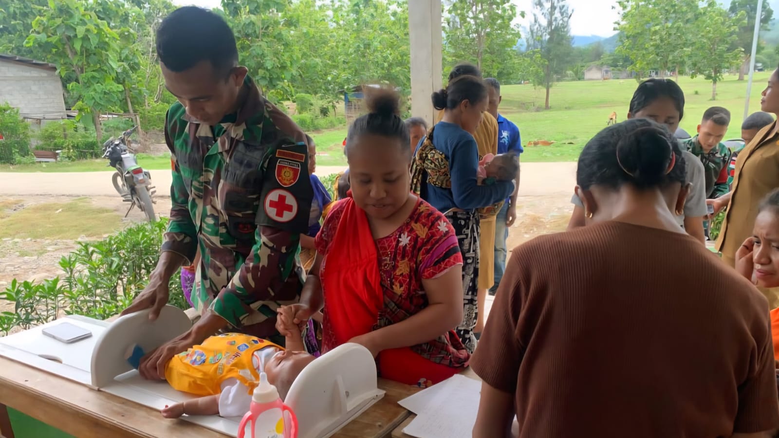Dansatgas Pamtas RI–RDTL Sektor Timur, Letkol Arm Dr. Erlan Wijatmoko, S.H., M.Han., menegaskan bahwa kesehatan masyarakat, khususnya balita, merupakan perhatian utama dalam pelaksanaan tugas sosial di perbatasan.