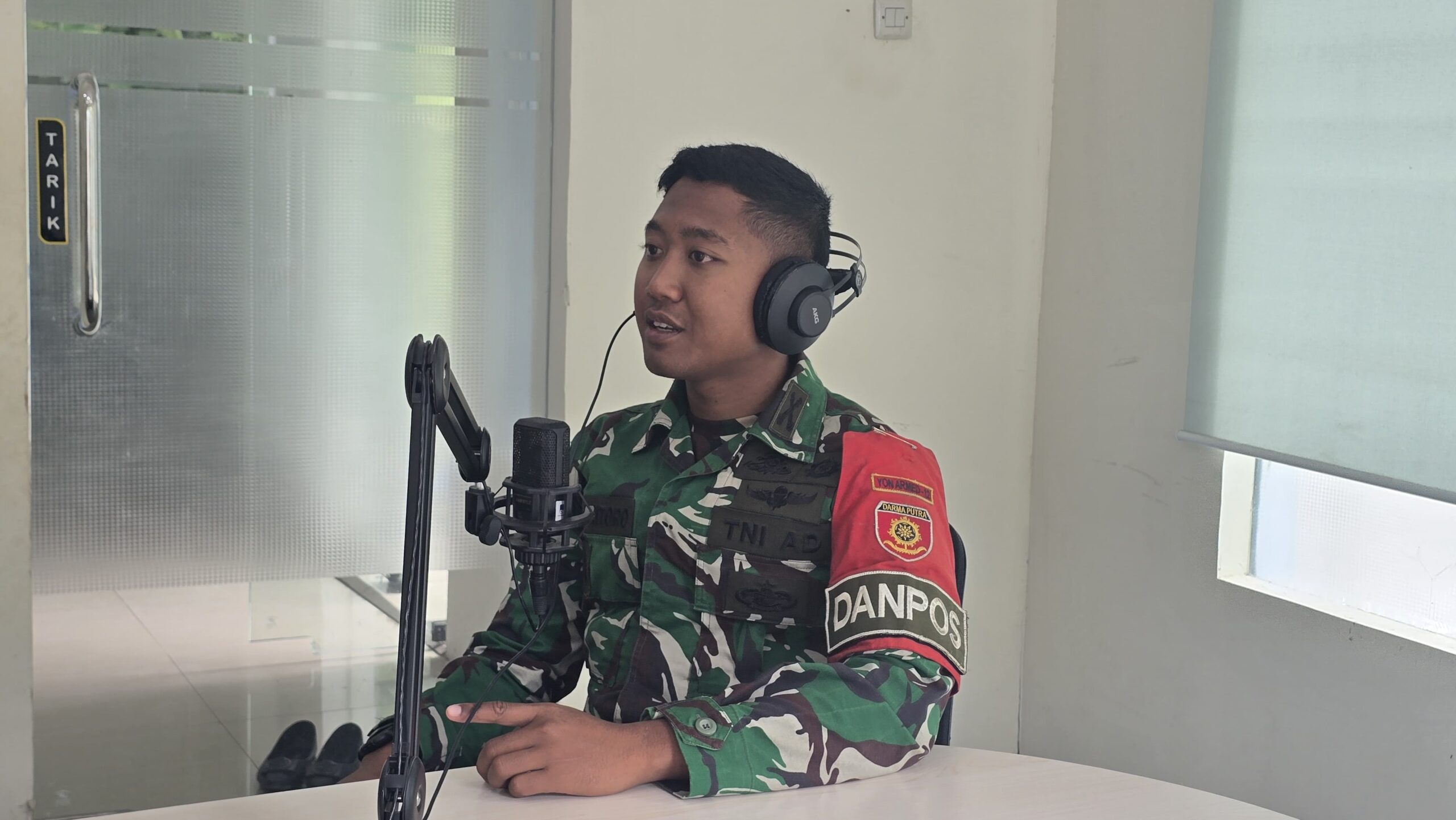 Belu, www.jatimkukini.com — Satgas Pamtas RI–RDTL Sektor Timur Yonarmed 12 Kostrad melaksanakan kegiatan podcast di RRI Atambua yang bertempat di Umanen, Kecamatan Atambua Barat, Kabupaten Belu, Nusa Tenggara Timur. Kegiatan ini mengangkat topik “Upaya Pencegahan Penyelundupan dan Perlintasan Ilegal di Wilayah Perbatasan”, sebagai bagian dari komitmen Satgas dalam memberikan edukasi dan informasi kepada masyarakat terkait pentingnya menjaga keamanan dan ketertiban di kawasan perbatasan RI–RDTL, Rabu (28/01/2026).