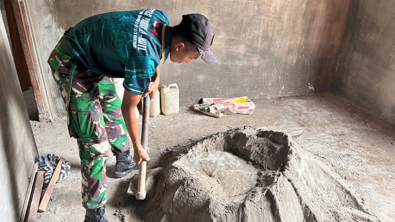 Karya bakti tersebut dilaksanakan secara gotong royong oleh personel Pos Haslot bersama warga setempat. Prajurit Satgas membantu proses penyemenan tembok rumah agar bangunan menjadi lebih kuat, rapi, dan layak huni, sekaligus meningkatkan kenyamanan dan keamanan bagi keluarga pemilik rumah.